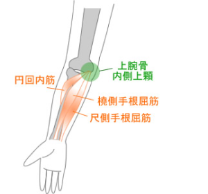 画像引用元:上腕骨内側上顆炎(ゴルフ肘)とは – 森整形外科リハビリクリニック