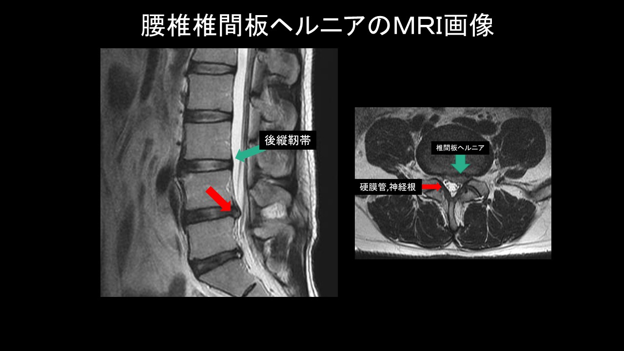 MRI検査では、実際に椎間板が飛び出している様子が確認され、その状態を指してヘルニアと診断されます。