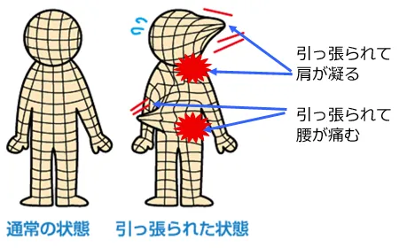 それらが少しずつ網を引っ張り、最終的な帳尻合わせが腰に現れます。